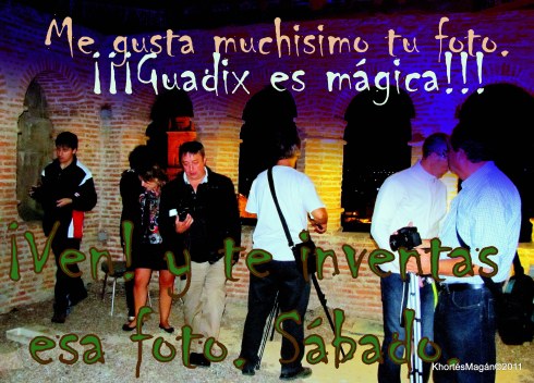 Mañana viernes a partir de las 22:00 y en ELOJODEGUADIX, te diremos como puedes participar. Seguimos con nuestro WORD WIDE PHOTO WALK y el Guadix Mágico. Ah, no tenemos premio al “ganador” TODOS Y TODAS SEREMOS GANADORES y el premio UNA TARDE-NOCHE ESPECIAL, del que eres protagonista. Seleccionaremos las fotos que “”más” nos gusten y las publicaremos en internet, tv, radio, prensa.